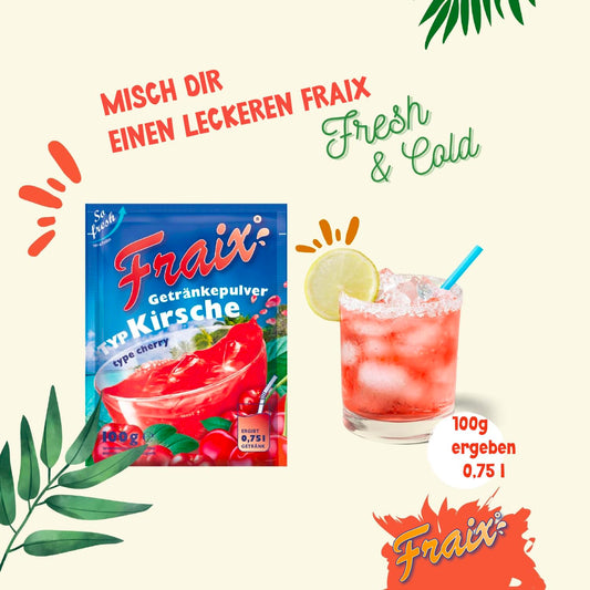 Einfache Zubereitung, genieße im Handumdrehen köstliche Fruchtsaftgetränke. Einfach einen Beutel Fraix Getränkepulver in ein Glas geben, 750 ml kaltes Wasser hinzufügen, umrühren und sofort genießen.